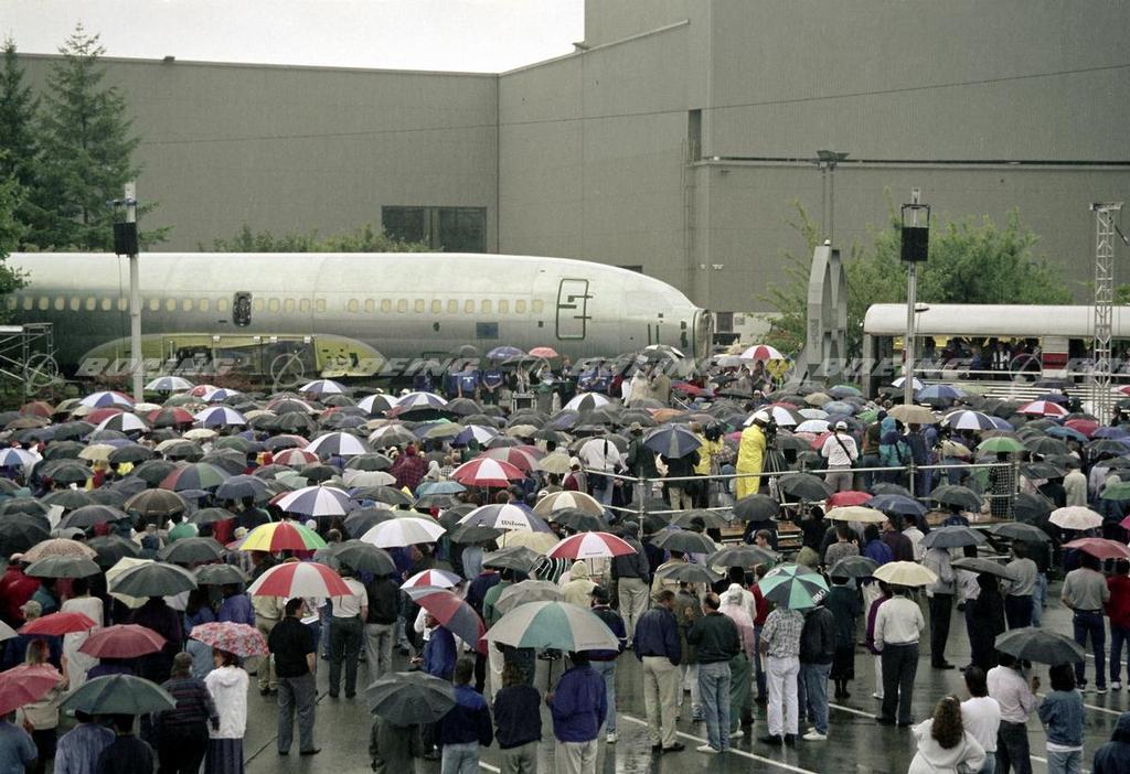 Crowd Gathers Around the First 737-900 at the Rollout Ceremony