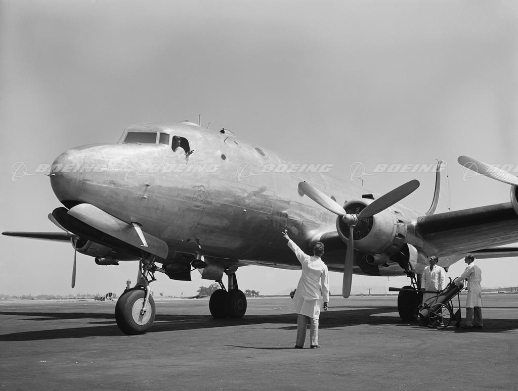 Douglas DC-4: With 24 firm commercial orders, production of the DC-4 began in the spring of 1939. But before the first was completed, the start of World War II necessitated the DC-4's reconfiguration as a military transport under the Army Air Force designation of C-54. (The DC-4 was known in the Navy as the R5D.) The plane made its first flight on February 14, 1942, with 1,162 being built as transports. Between 1942 and 1945, DC-4s successfully completed 79,642 transoceanic flights in support of the war effort, with only three ditchings, one of which was a test. A single C-54, nicknamed Sacred Cow, was built as the first official presidential transport aircraft. After the war, many were converted to commercial airliners. In addition 79 new DC-4s were delivered to airline customers in 1946 and 1947. Military DC-4s gained fame as the principle transport used during the 1948-1949 Berlin Airlift.