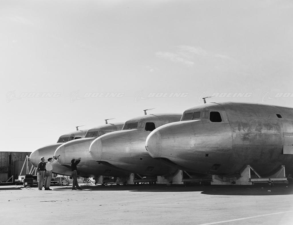 Douglas DC-6 (1946-1958): Nearly identical to the DC-4 in appearance, the DC-6 was first conceived as a long-range military transport. The plane made its maiden flight on February 15, 1946. The key difference between the DC-4 and DC-6 was the DC-6’s larger engines, which were twice as powerful as the engines on the DC-4. The DC-6 was the first Douglas airliner with a pressurized cabin, which enabled it to fly higher and faster, thus taking its passengers “over the weather.” The DC-6 was the most economical commercial aircraft of the propeller era. Its operating costs were among the lowest until jetliners came on the scene. Military versions were produced under the designations C-118 (Air Force) and R6D (Navy). President Harry Truman chose a DC-6 for official use, and christened it the “Independence,” for his hometown in Missouri. During its 12-year production run, Douglas delivered 537 DC-6s, plus 167 military versions.