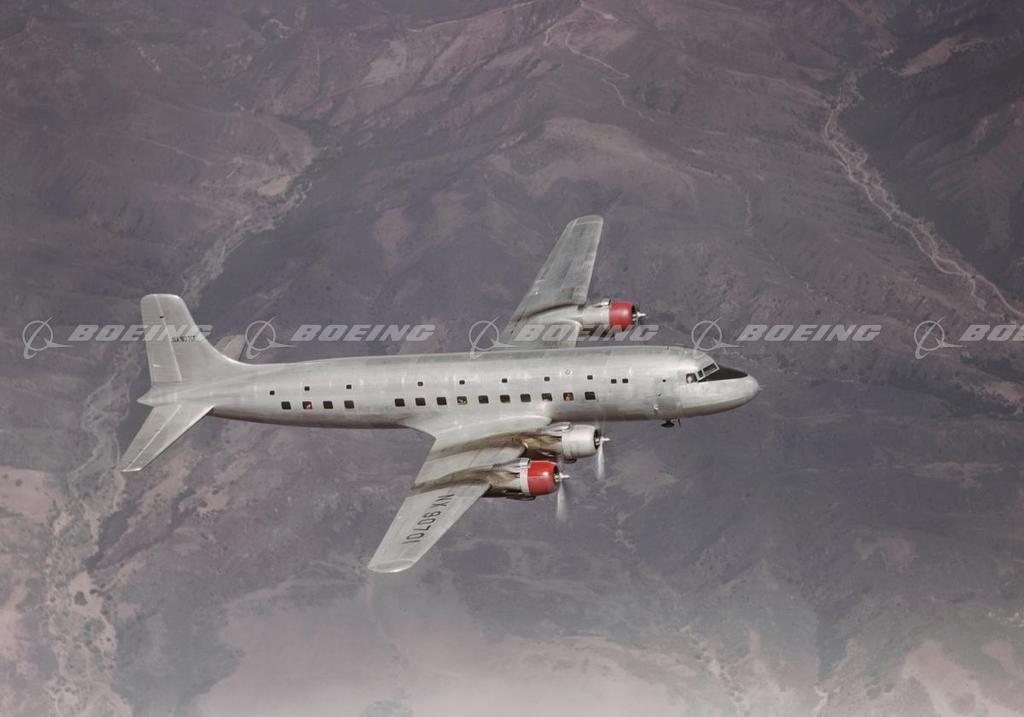 Douglas DC-6 (1946-1958): Nearly identical to the DC-4 in appearance, the DC-6 was first conceived as a long-range military transport. The plane made its maiden flight on February 15, 1946. The key difference between the DC-4 and DC-6 was the DC-6’s larger engines, which were twice as powerful as the engines on the DC-4. The DC-6 was the first Douglas airliner with a pressurized cabin, which enabled it to fly higher and faster, thus taking its passengers “over the weather.” The DC-6 was the most economical commercial aircraft of the propeller era. Its operating costs were among the lowest until jetliners came on the scene. Military versions were produced under the designations C-118 (Air Force) and R6D (Navy). President Harry Truman chose a DC-6 for official use, and christened it the “Independence,” for his hometown in Missouri. During its 12-year production run, Douglas delivered 537 DC-6s, plus 167 military versions.