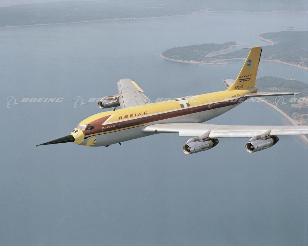 On New Year's Eve 1966, after more than 14 years of study, design work and competition, the U.S. federal government selected Boeing to build the prototype for the country's first supersonic transport (SST). Boeing fitted the Dash 80 with a special nose section and avionics of the proposed Supersonic Transport (SST) for testing purposes. Twenty-six airlines ordered 122 of the transports. The final design featured a double-jointed, needle-shaped nose that would drop during takeoff and landing for improved pilot visibility. Government funding was withdrawn in 1971 before the SST prototype was finished.