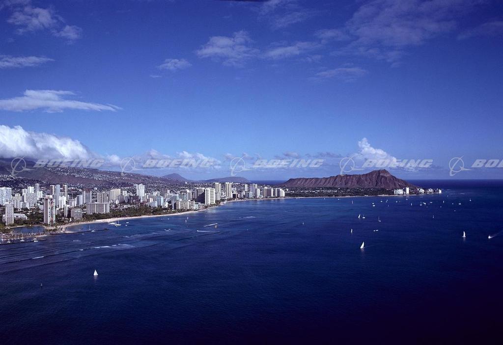 Diamond Head and Waikiki Shoreline from the Ocean, Oahu, Hawaii