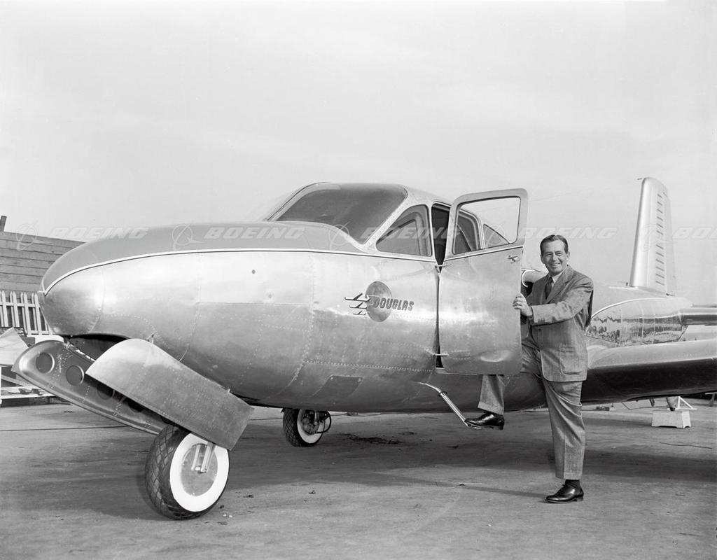 Donald Wills Douglas Sr. Leans on the Prop of a New DC-7