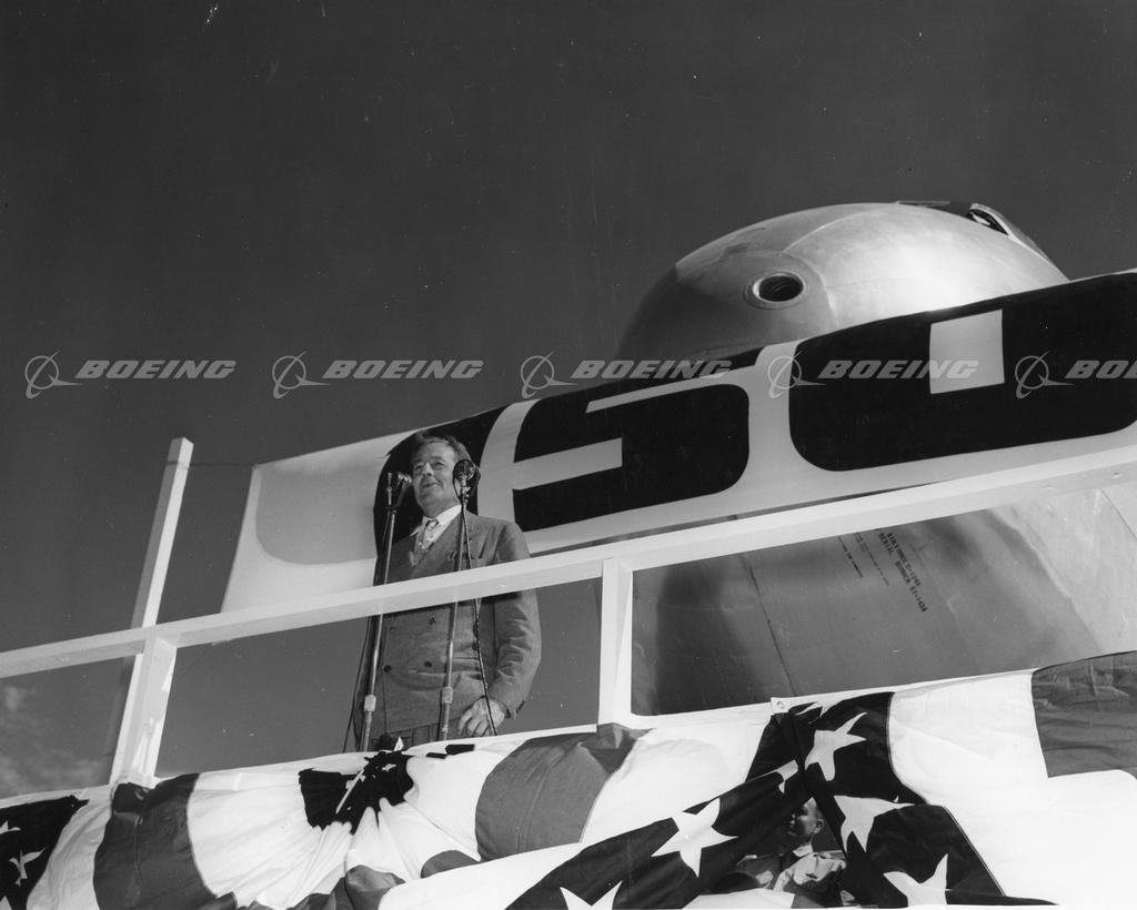 Donald W. Douglas at Podium for Delivery of 150th C-124 Globemaster II