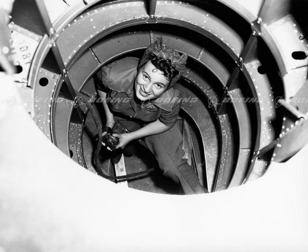 A Douglas "Rosie" in Long Beach Rivets a Boeing B-17 Tail