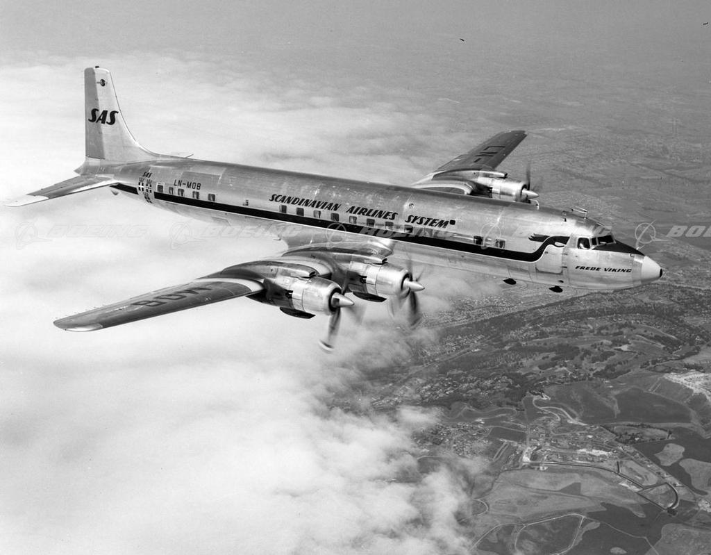 Douglas DC-7C in SAS Livery Crossing California Coastline