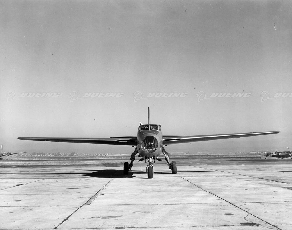 The XB-42 and the XB-43 were top security wartime programs which produced only four flying aircraft. Two engines driving tail propellers were housed in the XB-42 fuselage. The XB-43 was a jet-propelled version of the XB-42.