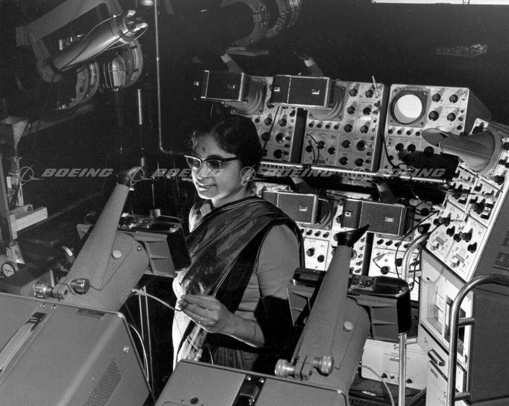 Dr. Lakshmi Sanga, a physicist from India, studies actions of superheated gases at the Boeing Company's Scientific Research Laboratories. This work was relevant in the early days of space travel.