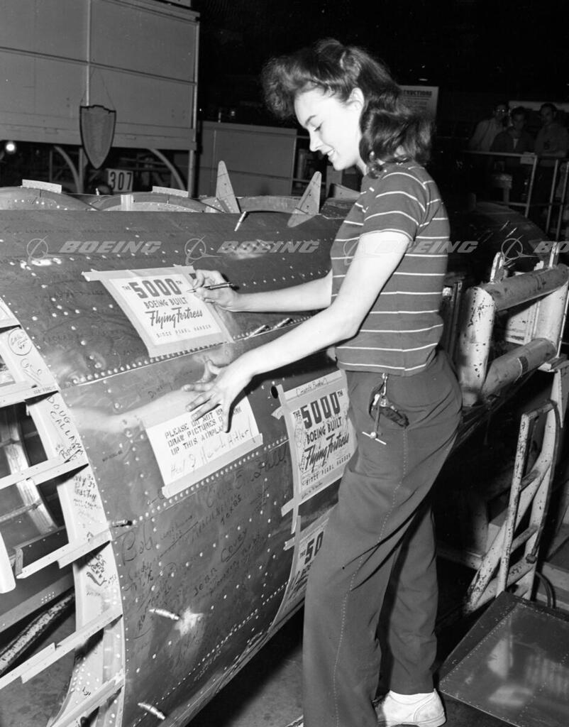 Earline Hubbard - Autographing on Fuselage of 5.000 Boeing Build Flying Fortress