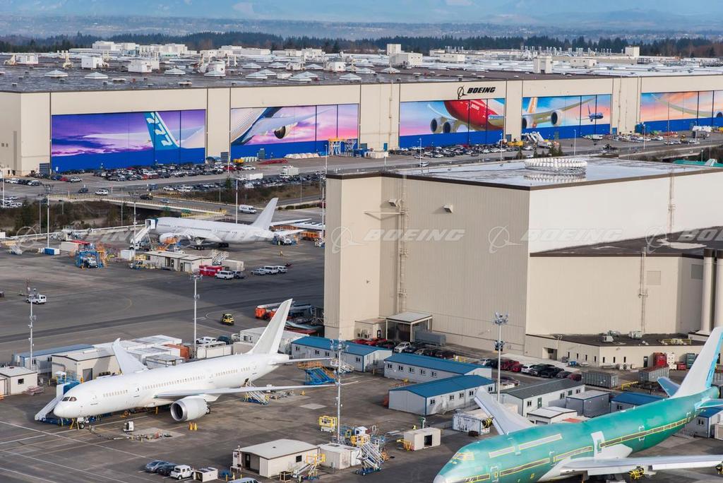 Boeing's New Livery Displayed on Hangar Doors of Everett Assembly Plant