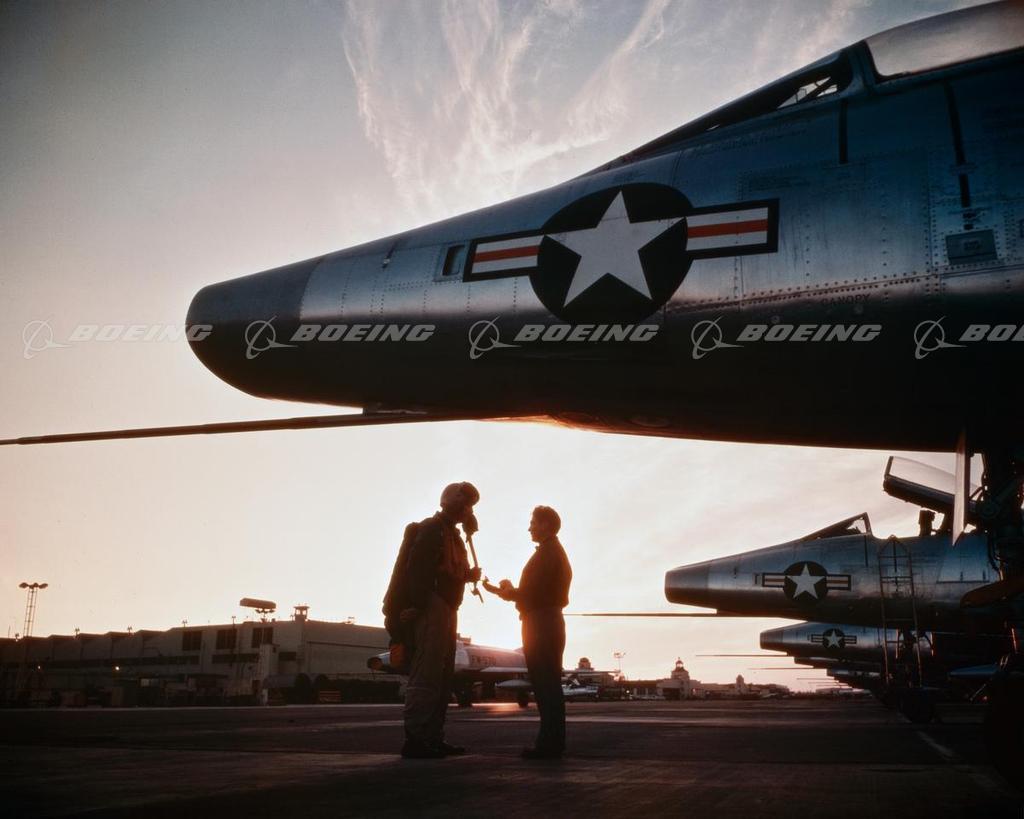 The F-100 Super Sabre was a sleek, swept-back-wing fighter that gave the United States a supersonic Air Force. Since May 1953, when the first prototype model, the YF-100, bettered the speed of sound on its first flight, the versatile fighter set numerous records for speed, endurance, range and maintenance. Late production models of the F-100D and F-100F had the capability of being launched from remote areas in the manner of manned missiles. Of the 2,290 Super Sabres produced, 1,274 F-100Ds included the first autopilot designed for a supersonic jet. Powered by a 16,950-pound-thrust afterburning jet engine, the F-100 was armed with four 20-millimeter cannons, two GAM 83A Bulldog missiles, four Sidewinder missiles, rockets, special stores, and/or 7,040 pounds of bombs.To demonstrate the ability of its pilot and aircraft, the Air Force chose F-100 Super Sabres to perform throughout the world in aerial precision demonstration flights. The famed Thunderbirds, a four-man aircraft team, were viewed by over 19 million people as the storied pilots performed intricate precision maneuvers at low altitude.