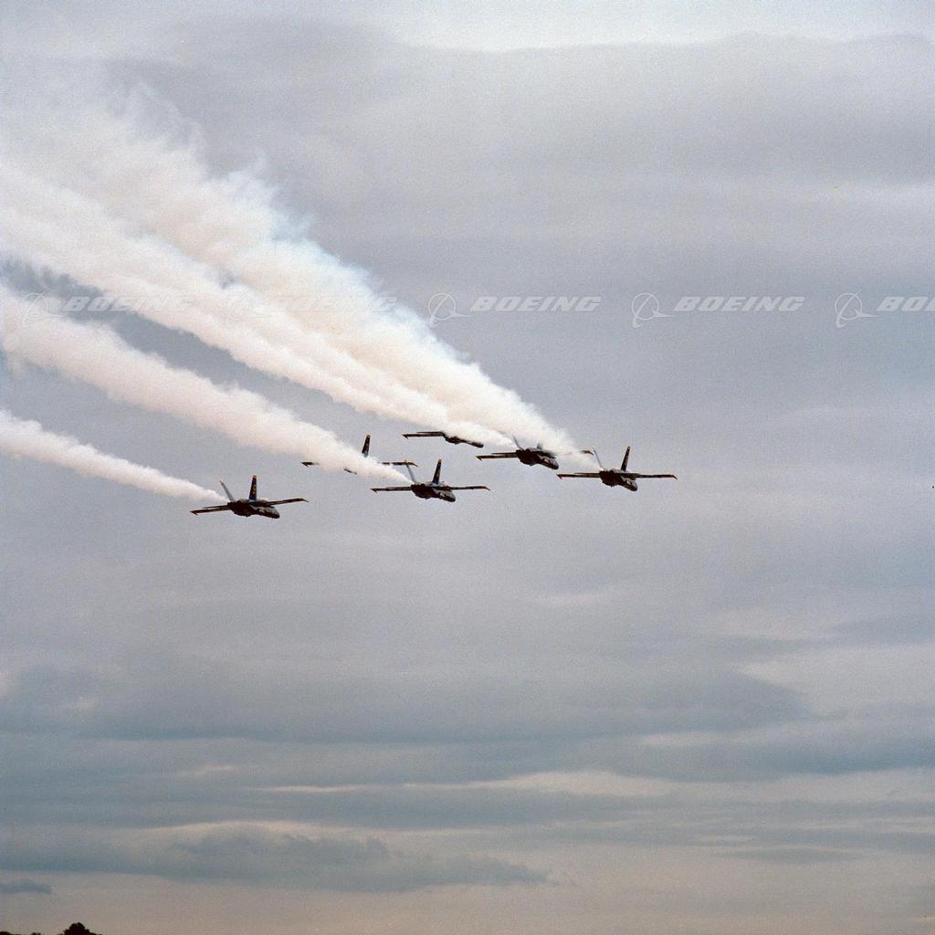 Blue Angels F/A-18A Hornet in a Diamond Flat Pass