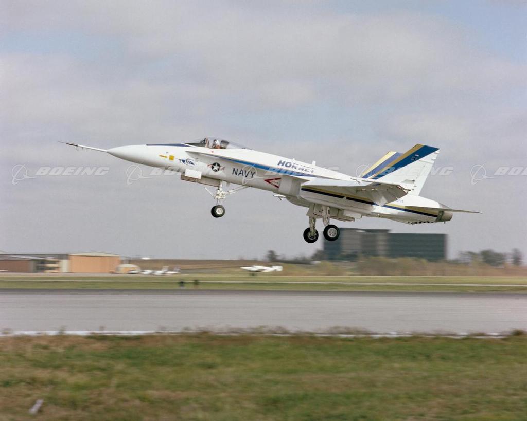 F/A-18 Hornet Takes Off from St. Louis Airport on its Maiden Flight