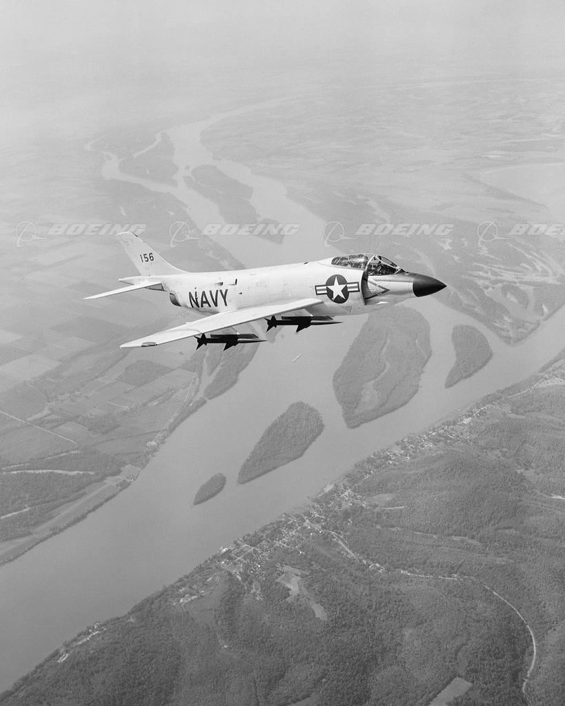 F3H-2M Demon Flying Over Mississippi and Missouri Rivers