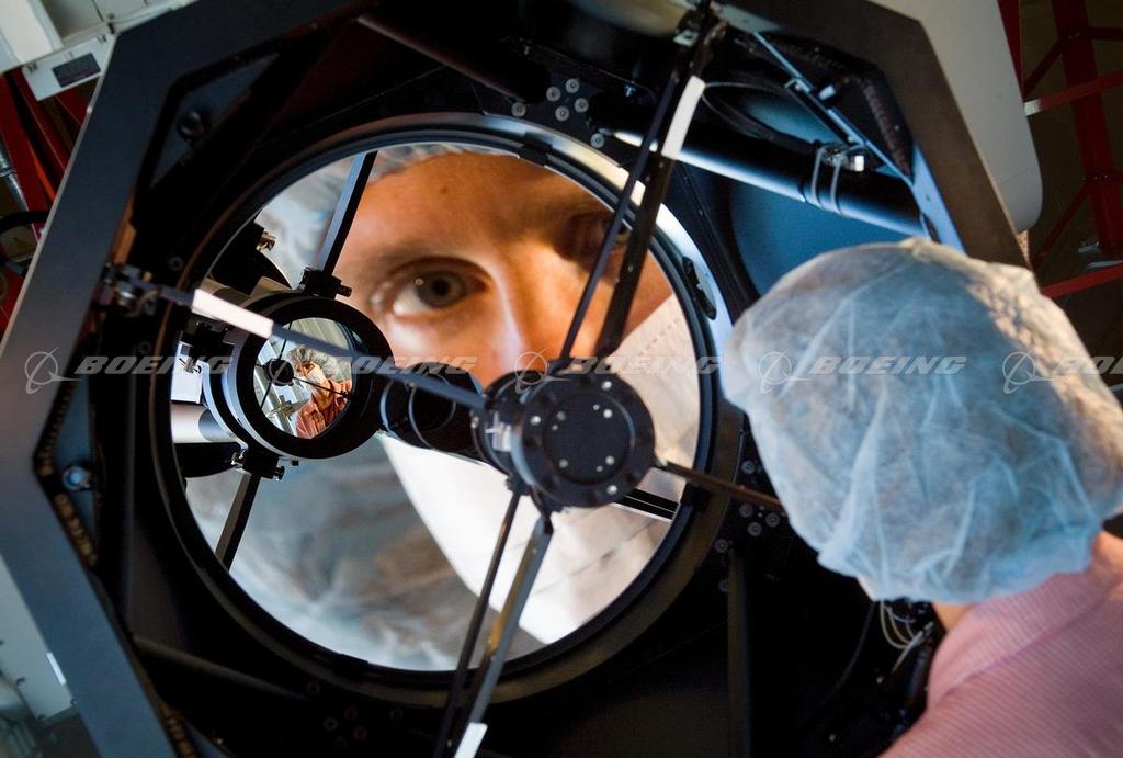 Boeing SVS Technician Inspects Airborne Relay Mirror System (ARMS)
