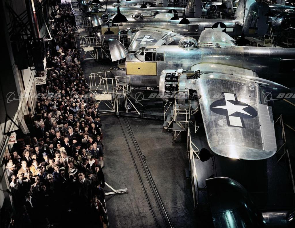 After Lunch, Workers Return to the B-25 Mitchell Assembly Line