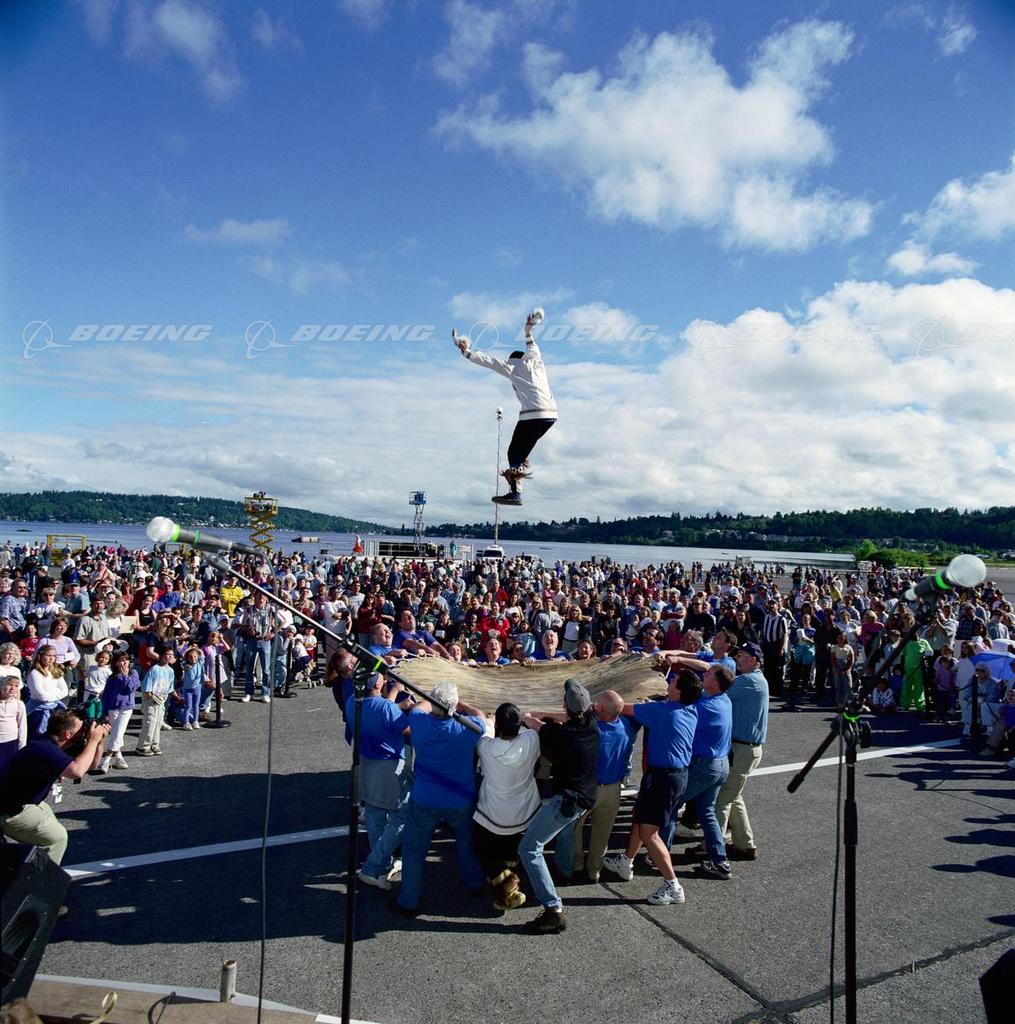 Crowd Gathers Around the First 737-900 at the Rollout Ceremony