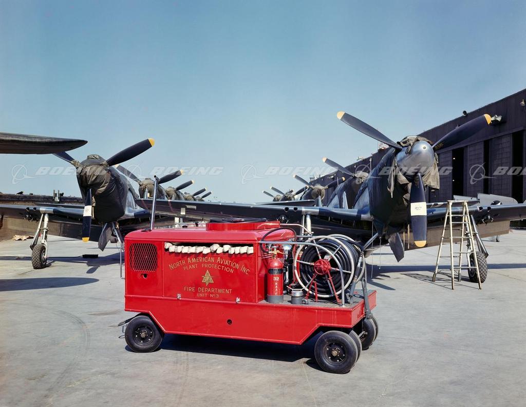 Fire Trailer in Front of P-51 Mustangs on Flight Apron