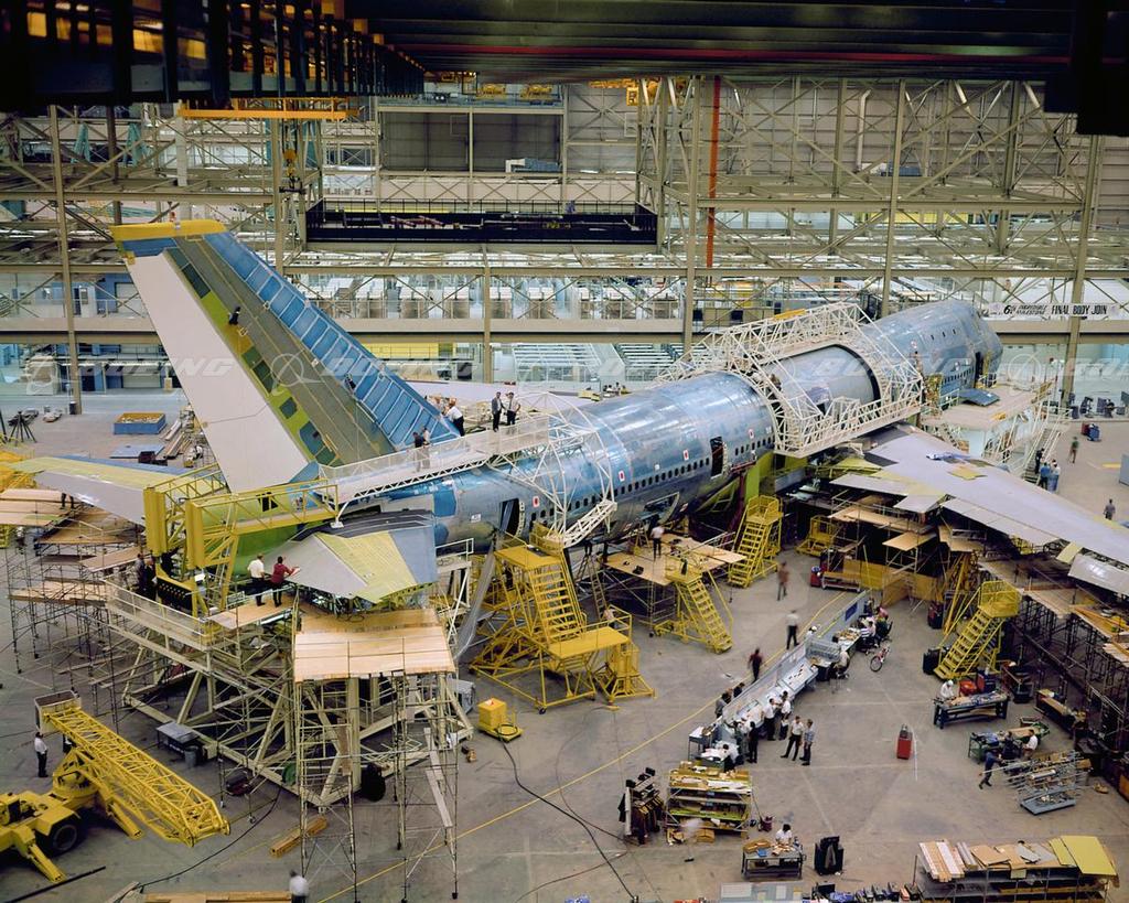 The 747 was truly monumental in size. The massive airplane required construction of the 200-million-cubic-foot 747 assembly plant in Everett, WA, the world's largest building (by volume). The fuselage of the original 747 was 225 feet long; the tail as tall as a six-story building. Pressurized, it carried a ton of air. The cargo hold had room for 3,400 pieces of baggage and could be unloaded in seven minutes. The total wing area was larger than a basketball court. Yet, the entire global navigation system weighed less than a modern laptop computer.