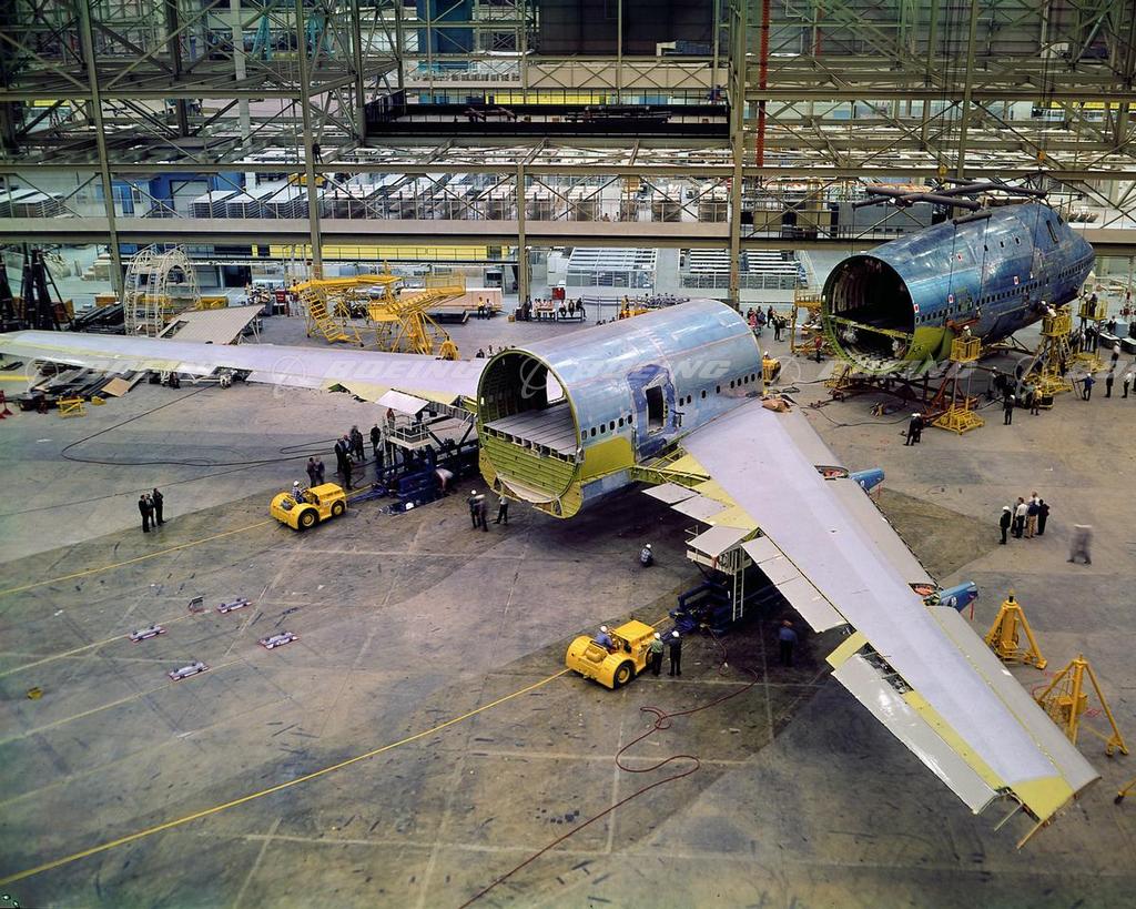 The 747 was truly monumental in size. The massive airplane required construction of the 200-million-cubic-foot 747 assembly plant in Everett, WA., the world's largest building (by volume). The fuselage of the original 747 was 225 feet long; the tail as tall as a six-story building. Pressurized, it carried a ton of air. The cargo hold had room for 3,400 pieces of baggage and could be unloaded in seven minutes. The total wing area was larger than a basketball court. Yet, the entire global navigation system weighed less than a modern laptop computer.