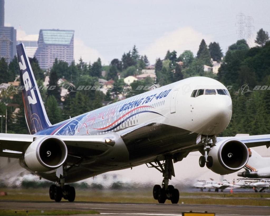 The first 767-400ER, dubbed VQ001, takes off from Boeing Field, Seattle, Washington. First flight formally launches the airplane's flight-test program, a rigorous series of evaluations to thoroughly test the airplane. The 767-400ER is a longer version of the 767-300ER, featuring additional wingspan, an updated flight deck, new interior and new landing gear.