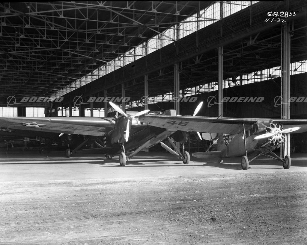 The twin engine aircraft in this photo are the YO-27 bomber prototypes produced by the General Aviation Corporation. Seven aircraft were produced at the factory in Dundalk, Maryland. The YO-27 offered the first electrically powered retractable landing gear fitted to a USAAC bomber.