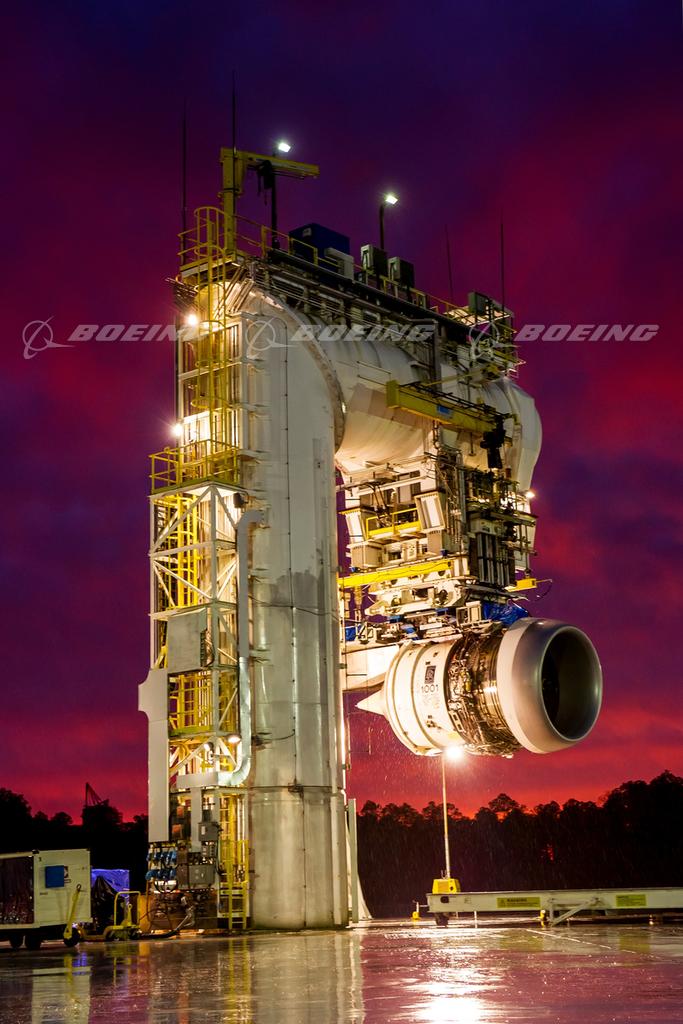 Ground testing of an engine exhaust nozzle made of ceramic matrix composite (CMC), which is designed to make engines quieter, lighter and more efficient. Boeing Research & Technology led the test team, which included engineers from Commercial Airplanes and Rolls-Royce. The CMC nozzle is installed on the back of a Rolls-Royce Trent 1000 engine at the engine manufacturer’s test facility in Stennis, Mississippi. The test focused on three areas: validating and correlating temperature predictions, demonstrating installation of the CMC nozzle on the engine and accumulating run time on an engine to qualify the nozzle for flight testing. New-generation engines on commercial airplanes are more efficient, but require materials capable of withstanding higher temperatures than previous engines. Ceramic matrix composites offer the potential of better thermal and structural performance while helping to reduce weight and acoustic footprint. The work is in support of the Federal Aviation Administration’s Continuous Lower Energy Emissions and Noise (CLEEN) Program. The CLEEN Program is a cost-share program with the FAA to conduct ground and flight demonstrations of airframe and engine technologies with the potential of reducing greenhouse gas emissions and community noise.