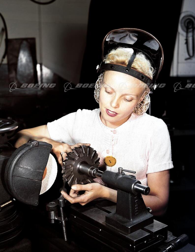 Female Employee Machinist Working on Aircraft for Douglas Aircraft Company