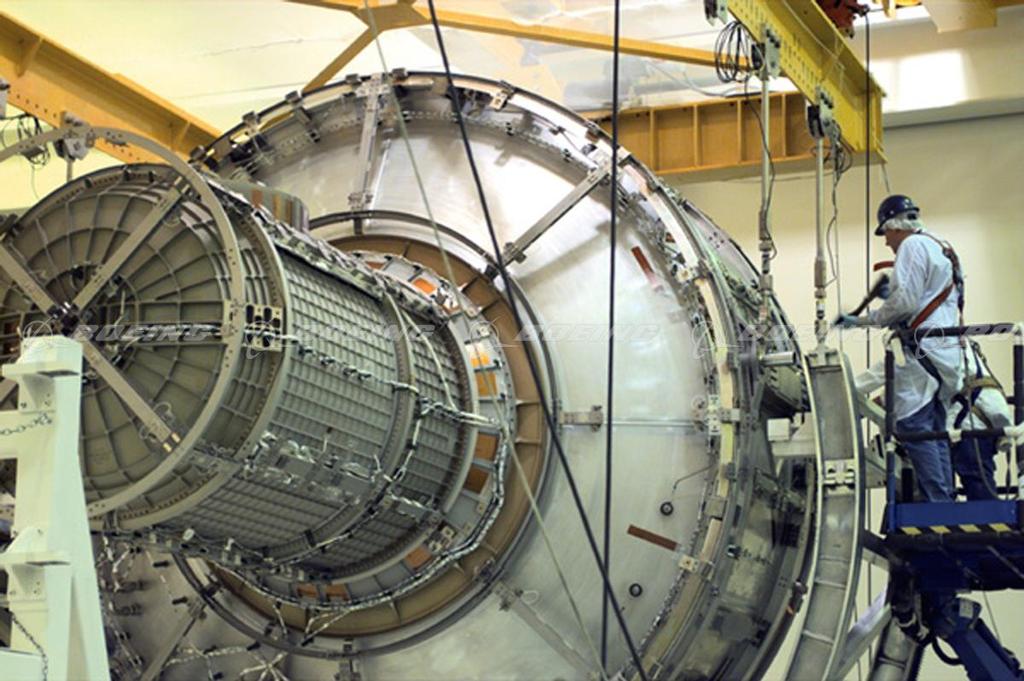 Boeing technicians at NASA's Marshall Space Flight Center in Huntsville, AL make final adjustments on the Airlock for the International Space Station, shortly before its shipment to the Kennedy Space Center. This gateway to space serves two key purposes; to keep air from escaping when the hatch to space is opened and to regulate the air pressure before an astronaut enters or leaves the International Space Station.