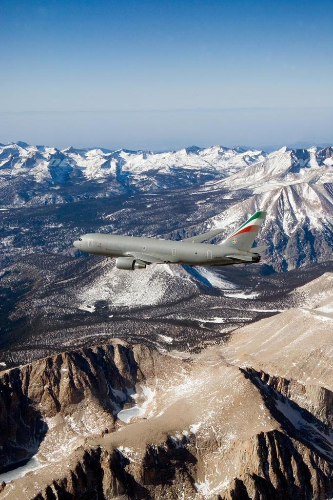 Italian Air Force 767 Tanker Above Snowy Mountains
