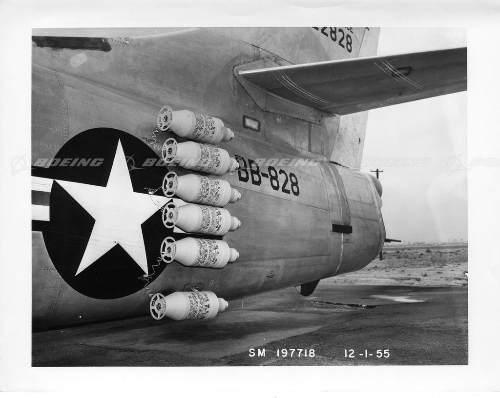 This RB-66B had 12 small rocket units in the aft fuselage for jet-assisted takeoff (JATO). The B-66 Destroyer was produced in the Douglas Aircraft factory in Long Beach, California.