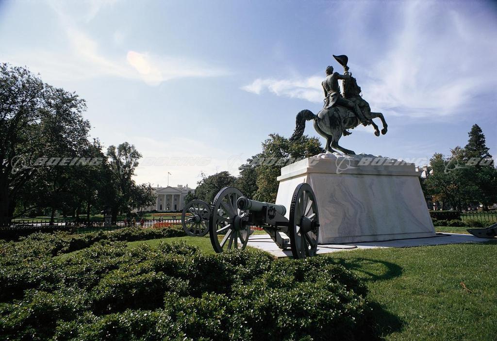 The White House North Portico Behind Andrew Jackson Statue at Lafayette Park, Washington D.C.