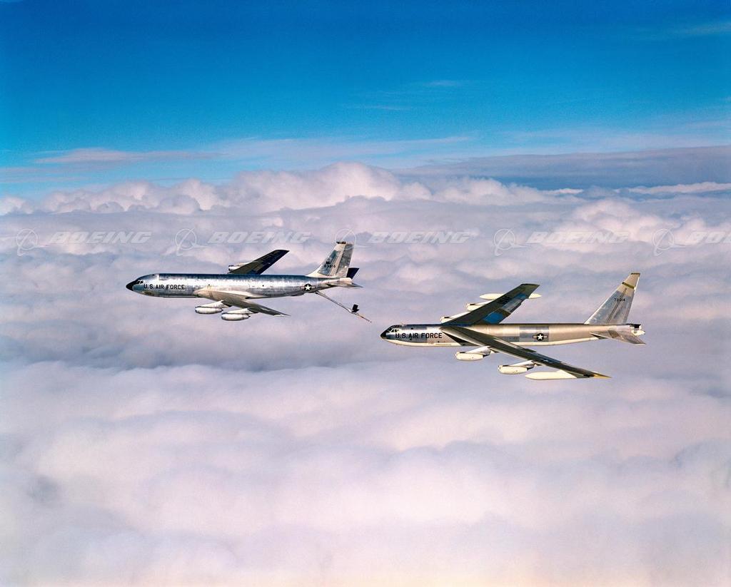 Dash 80 and B-52 Fly Over KC-135 Rollout, with KC-97 in Background
