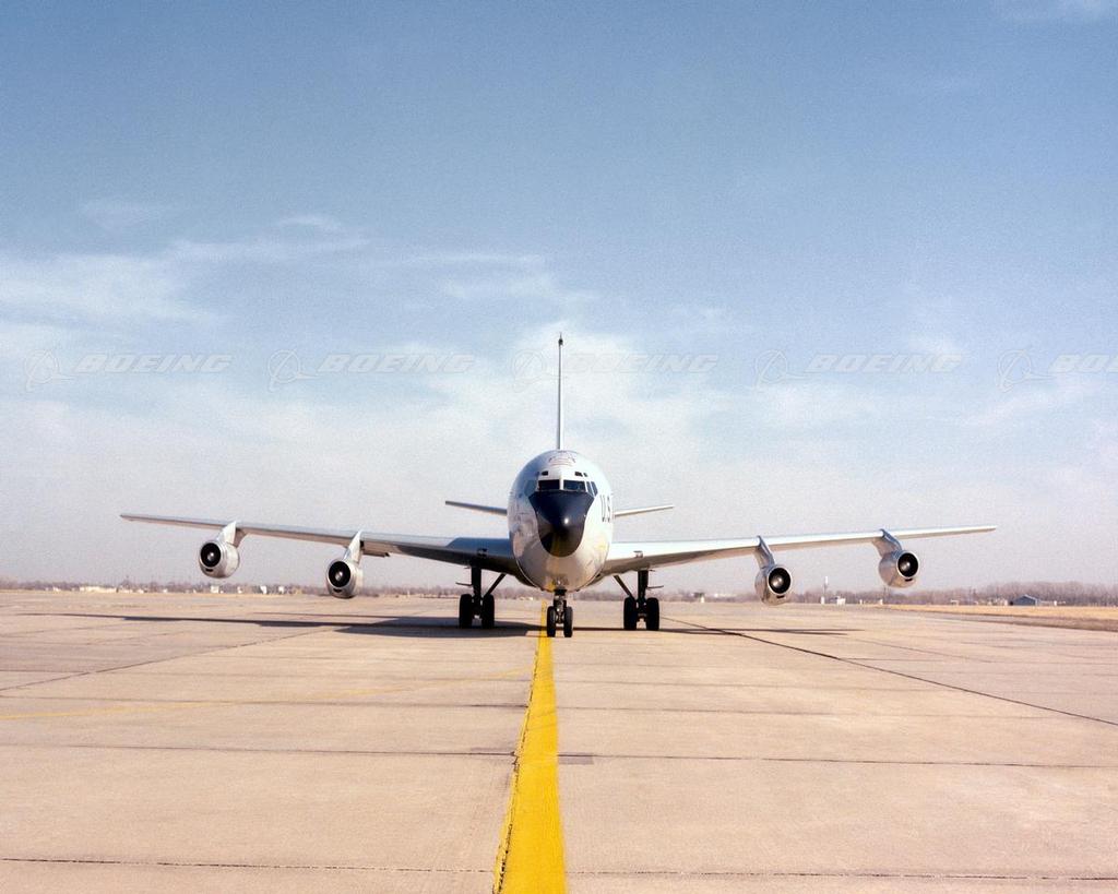 The KC-135 was the only jet airplane designed specifically for aerial refueling. More than 732 KC-135s were built, and most, with modifications, remain in service into the 21st century. The KC-135 shared the Dash-80 prototype with the Boeing 707 commercial transport, but was launched first in 1956. The KC-135's aerial refueling equipment in the lower deck leave the upper deck clear for 25 tons of cargo or 80 troops. KC-135s supplied warplanes with fuel during the Persian Gulf conflict, Operation Enduring Freedom over Afghanistan, and for homeland defense.