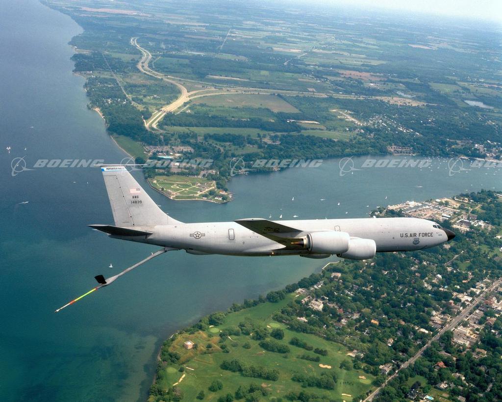 The KC-135 was the only jet airplane designed specifically for aerial refueling. More than 732 KC-135s were built, and most, with modifications, remain in service into the 21st century. The KC-135 shared the Dash-80 prototype with the Boeing 707 commercial transport, but was launched first in 1956. The KC-135's aerial refueling equipment in the lower deck leave the upper deck clear for 25 tons of cargo or 80 troops. KC-135s supplied warplanes with fuel during the Persian Gulf conflict, Operation Enduring Freedom over Afghanistan, and for homeland defense.