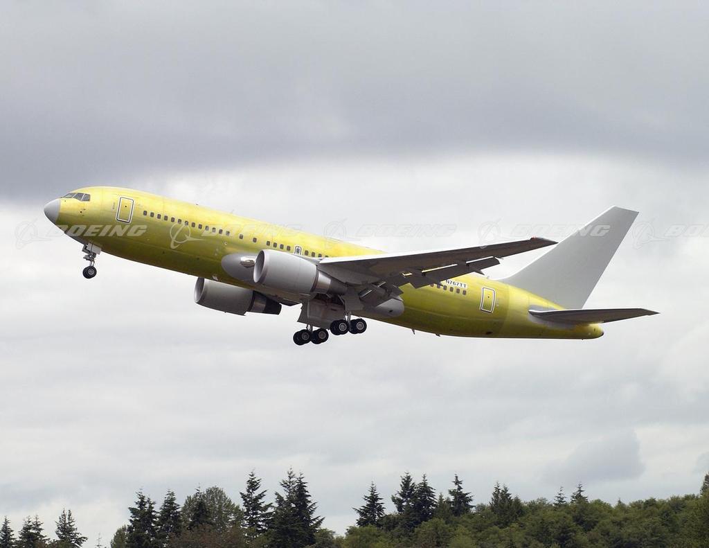 The first 767 Global Tanker prepares to depart Everett to undergo final modifications at Boeing's Wichita facility.