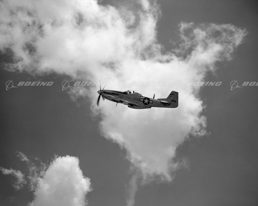 North American Aviation's powerful and agile P-51 was the first single-engine aircraft based in England to penetrate Nazi Germany during World War II. With its superior aerodynamics, the Mustang outperformed enemy planes and went on to establish an impressive aerial record. Initially designed for the British Royal Air Force for fighter reconnaissance, it first flew in 1941. By war's end North American built 15,575 P-51 Mustangs. The P-51D Mustang had a wingspan of 37 feet and was 32 feet long. Powered by one 1,490- horsepower engine, it flew 437 mph with a range of 2,300 miles.