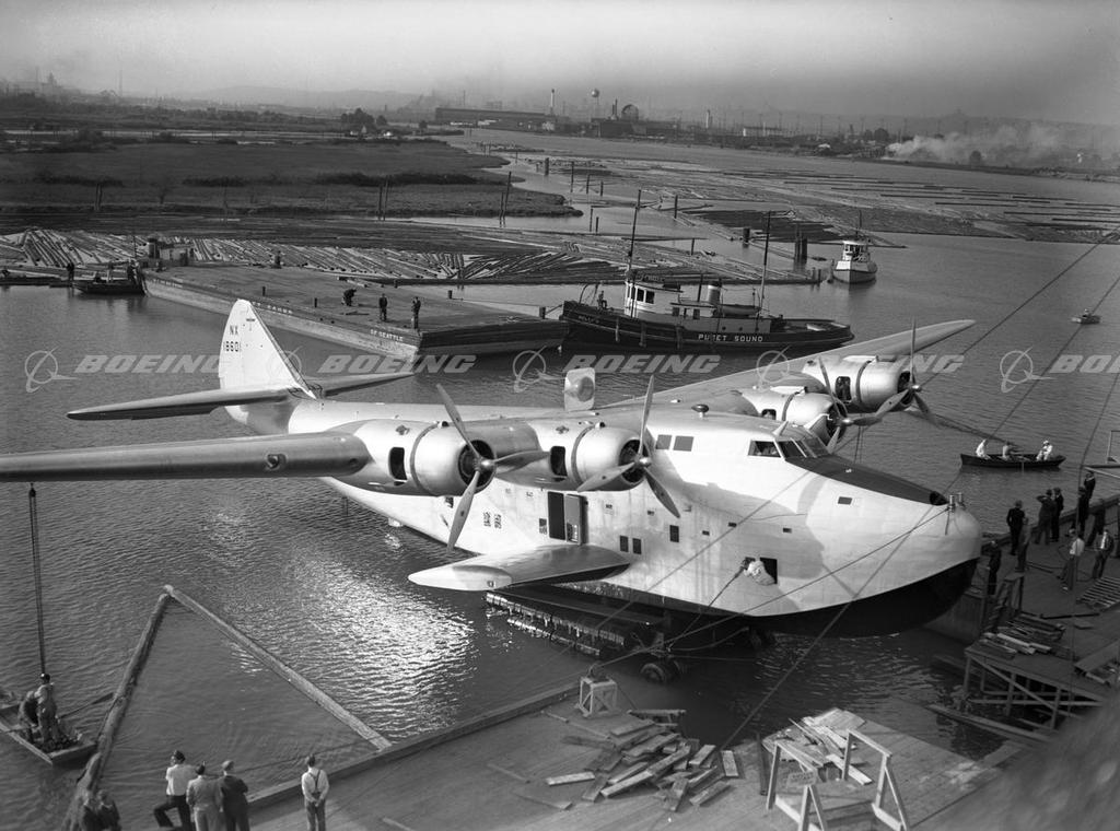 With a nose similar to that of the modern 747, the Clipper was the "jumbo" airplane of its time with a top speed of 199 miles per hour. Boeing built 12 Model 314s between 1938 and 1941. At the outbreak of World War II, the Clipper was drafted into service to ferry materials and personnel. Few other aircraft of the day could meet the wartime distance and load requirements. Able to carry 74 passengers and a crew of 10, the four-engine Model 314 was the largest passenger airliner of its time. The Clipper's 74 seats converted into 40 bunks for overnight travelers.