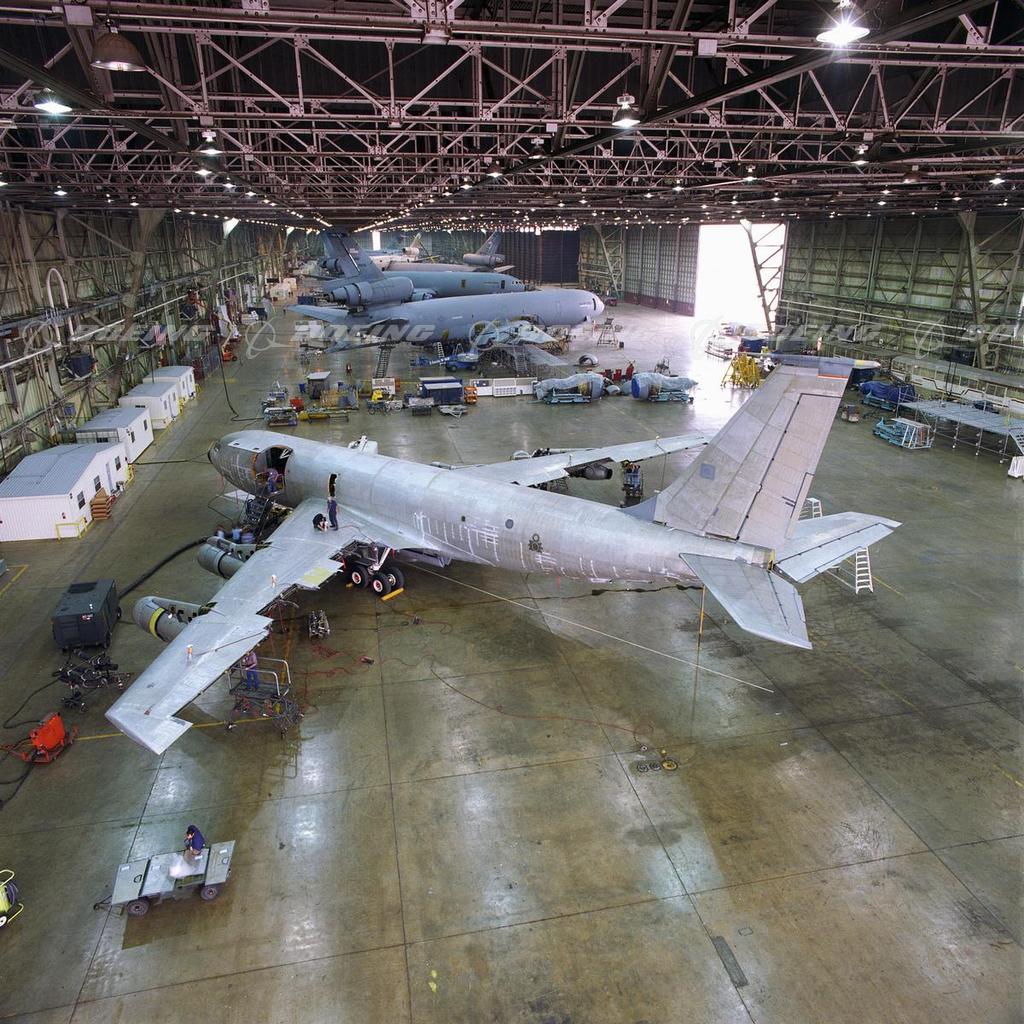Maintenance work on the first KC-135 gets underway at the Boeing Aerospace Support Center in San Antonio, TX