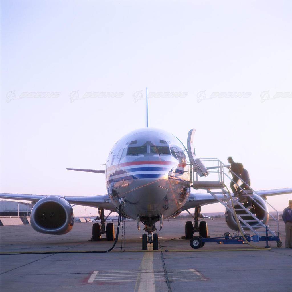 Development of the quieter, more fuel-efficient CFM56-3 series of engines allowed Boeing to improve its most popular jetliners and produce the advanced-technology 737-300, -400, and -500. The engines are larger and mounted forward of the wing struts instead of tucked directly under the wing as in the -100 and -200 versions. Advancements on the new-generation 737s included a stregthened wing to accomodate greater gross weight, tip extensions to the wings and horizontal stabilizers, and stregthened wheels, tires and brakes. The 737-200, -300, -400, -500 have the same handling characteristics so that pilots can use the same Type rating to fly all of them. Airlines' spares inventory and maintenance are simplified by making a substantial number of replaceable parts on the -300, -400, -500 identical to those used on the -200. The 737-400 is about 10 feet longer than the 737-300. It holds 19 more passengers and has a gross weight of up to 150,000 pounds, while retaining the same fuel efficiency, low noise, and low operating costs as its predecessor.