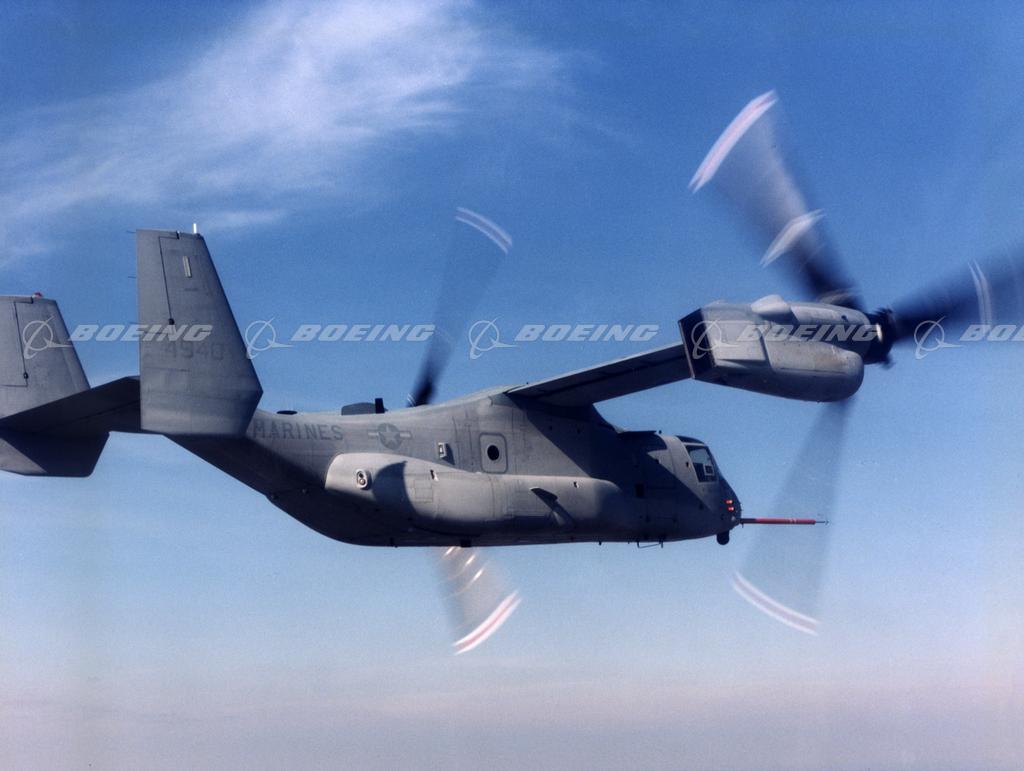 The Osprey, in development for about 25 years, is a tilt-rotor aircraft that combines the vertical takeoff, landing and hover capabilities of a helicopter with the speed, range and altitude of a turboprop airplane. Its rotors fold and wing rotates 90 degrees for storage on aircraft carrier or amphibious ship hangar decks.