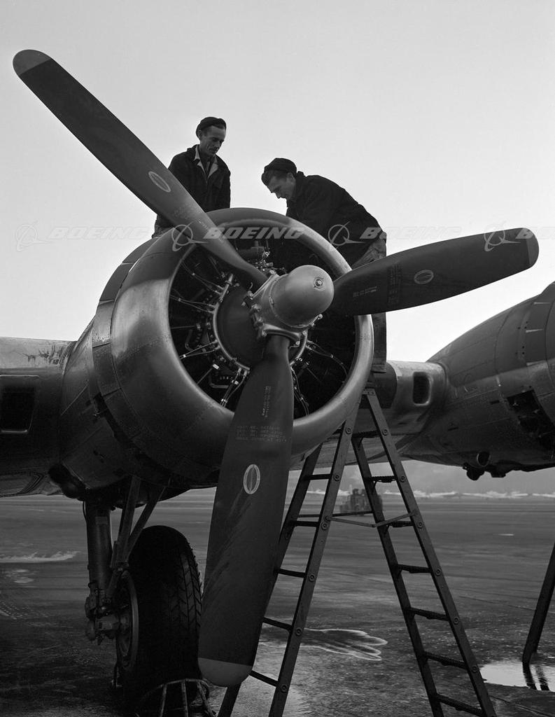 Mechanics at Work on B-17 Flying Fortresss