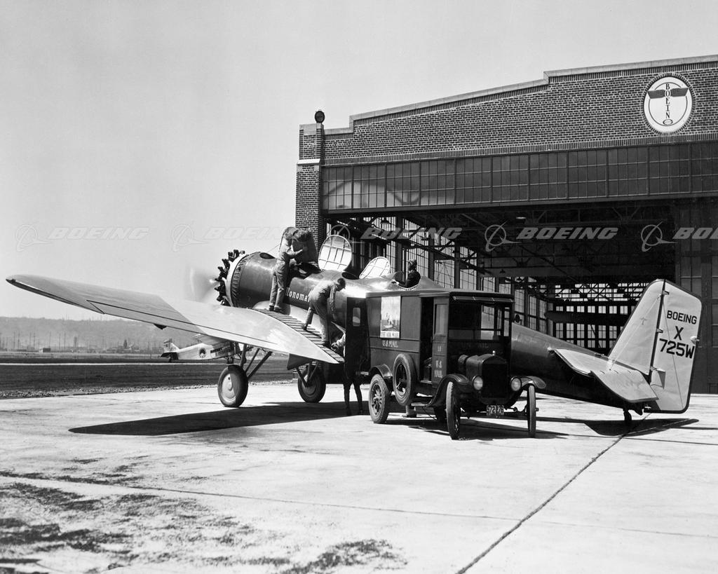 The Boeing Monomail, designed initially to carry cargo and mail, was one of the most revolutionary airplanes in commercial aviation history. Two were built: the Model 200 mail plane and the Model 221 six-passenger transport. Both subsequently were revised for transcontinental passenger service and became Model 221As. The Monomail achieved major performance increases not by the addition of brute horsepower, but by structural and aerodynamic refinements. Air resistance was reduced by the Monomail's smooth, all-metal construction; cantilevered (that is, without struts), low-wing design; and the anti-drag cowling over the air-cooled Hornet engine. Retracting the wheels into the wing during flight further improved the mail plane's aerodynamics.