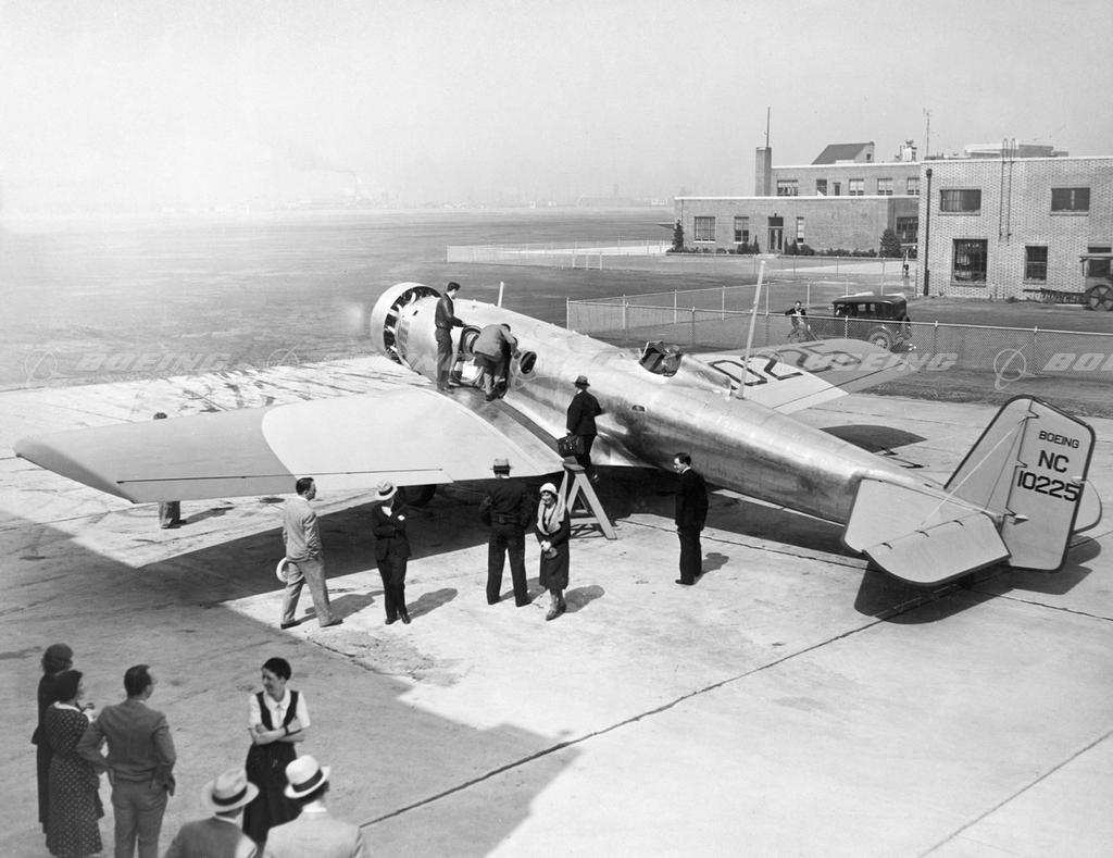 The Boeing Monomail, designed initially to carry cargo and mail, was one of the most revolutionary airplanes in commercial aviation history. Two were built: the Model 200 mail plane and the Model 221 six-passenger transport. Both subsequently were revised for transcontinental passenger service and became Model 221As. The Monomail achieved major performance increases not by the addition of brute horsepower, but by structural and aerodynamic refinements. Air resistance was reduced by the Monomail's smooth, all-metal construction; cantilevered (that is, without struts), low-wing design; and the anti-drag cowling over the air-cooled Hornet engine. Retracting the wheels into the wing during flight further improved the mail plane's aerodynamics.