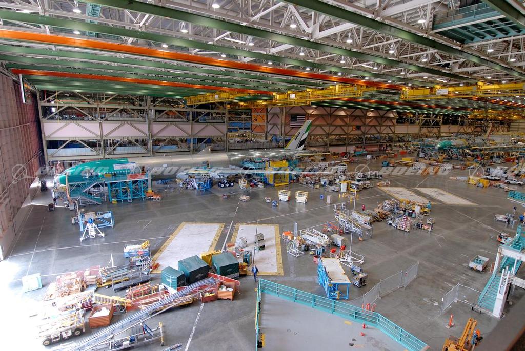 On Nov. 8, 2006 The Boeing Company began using a moving assembly line for the first time to build its market-leading 777 jetliner. To make its 777 assembly line move during final assembly, Boeing uses a tug that attaches around the front landing gear of the airplane and pulls it forward. The tug has an optical sensor that follows a white line along the floor. During final assembly, mechanics install items such as seats, overhead stow bins and other items on the interior of the airplane. In addition, functional testing is performed on the various systems in the airplane and the engines are attached.