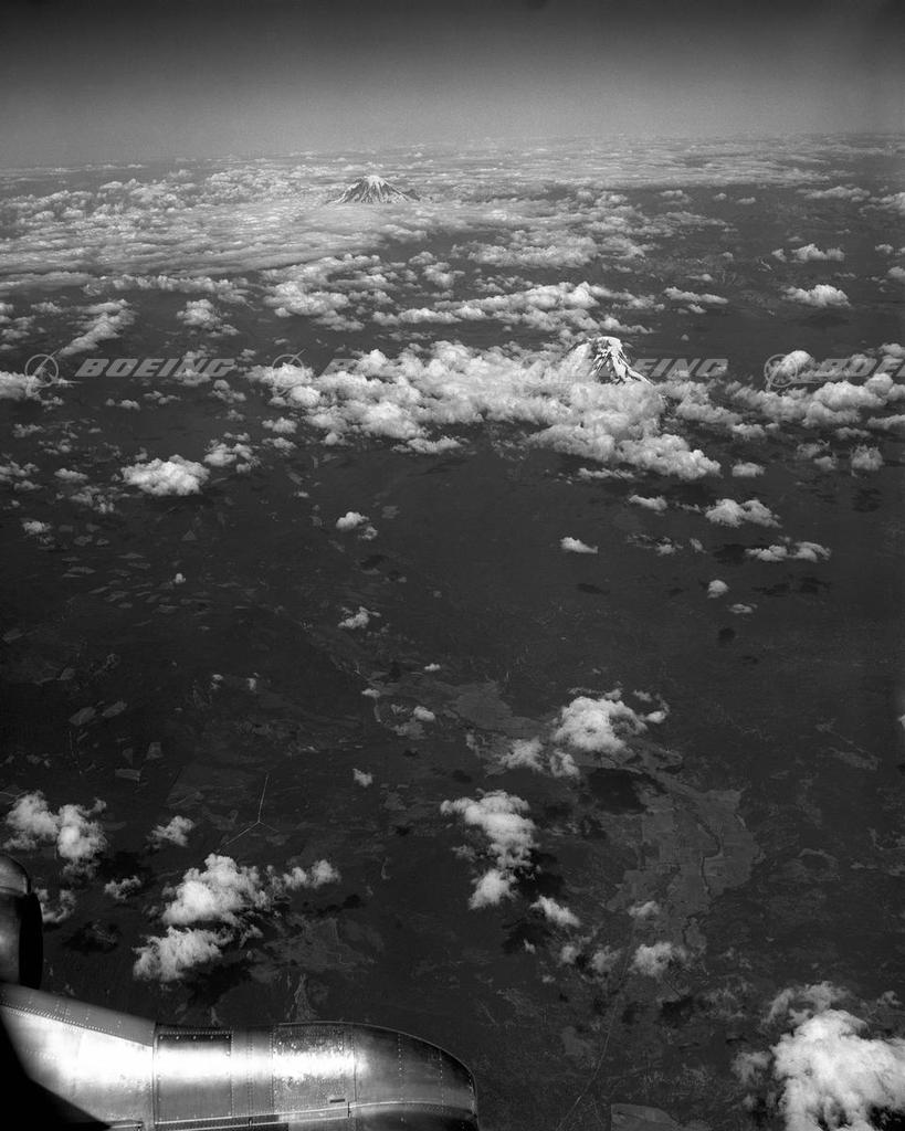 Mt. St. Helens Looms in Front of Mt. Adams in this Photo Taken from a C-97A in 1950