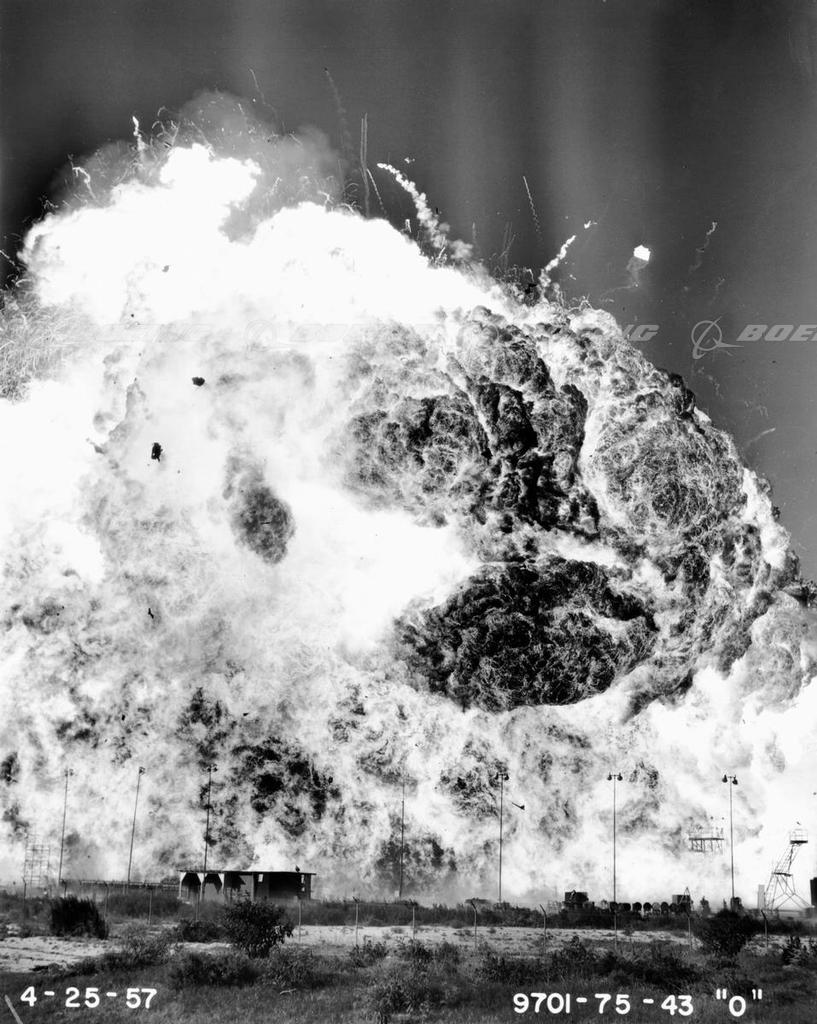 In October 1945, the Army Technical Services Command asked U.S. aeronautical corporations to design a guided missile. North American Aviation proposed the MX-770, the Navaho -- a 500-mile-range missile, which made many key technological breakthroughs. The X-10 Navaho test drone was the first turbojet-powered vehicle to reach Mach 2, and the first aircraft to fly a complete mission under inertial (computerized) guidance. Phase two of the nuclear Navaho development program was the G-26 drone missile (a failed launch is shown here), which would prove the vertical launch system. The G-26 required the development of the largest ramjet engines built, an auxiliary power unit to power the missile's electronics and hydraulics, and a more effective autonavigator unit, the N-6 or NAVAN (North American Vehicle Auto Navigation). The Navaho program was canceled in July 1957 when, after extensive testing at Cape Canaveral, Florida, the Atlas ICBM was chosen over winged missile designs.