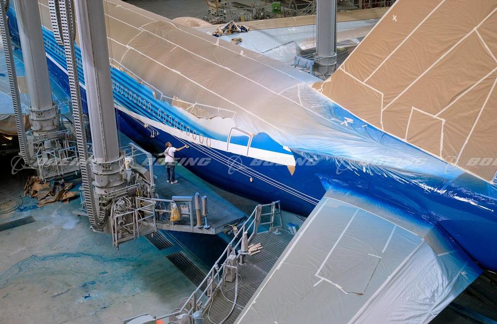 New Boeing Livery is Applied to a 777-200LR at the Everett Paint Hangar