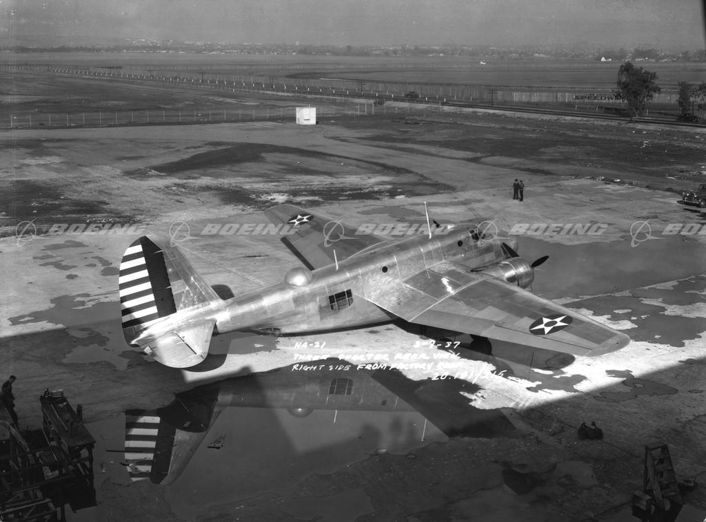 The experimental NA-21 Dragon was North American's first venture into multiengine design. It was a high-altitude bomber armed with single .30-inch machine guns in each of five positions, including in a ball-type turret in the nose. The NA-21 could carry 10,000 pounds of bombs short distances or carry 2,200 pounds of bombs for 1,900 miles. After a few small changes, the NA-21 was accepted for testing at Wright Field but orders did not follow. The Air Force bought the single NA-21 in 1939 and redesignated it the XB-21.