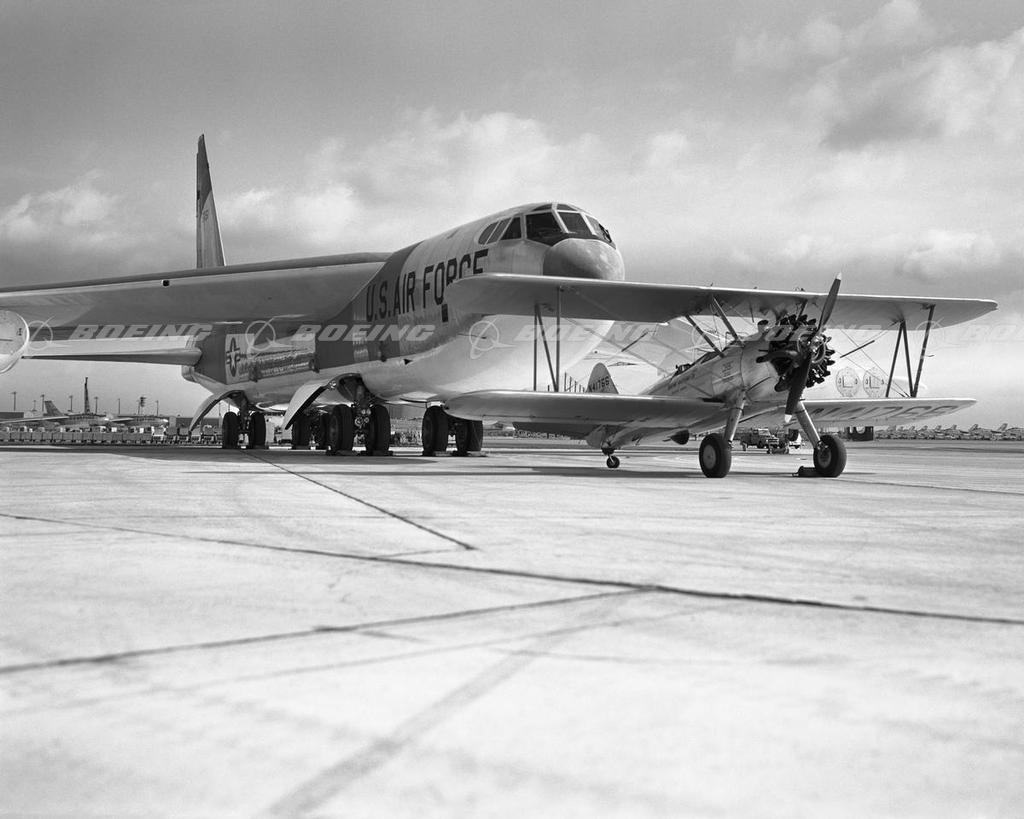 Odd Couple - A B-52 Stratofortress Looms over a Stearman Kaydet Trainer PT-13 Biplane